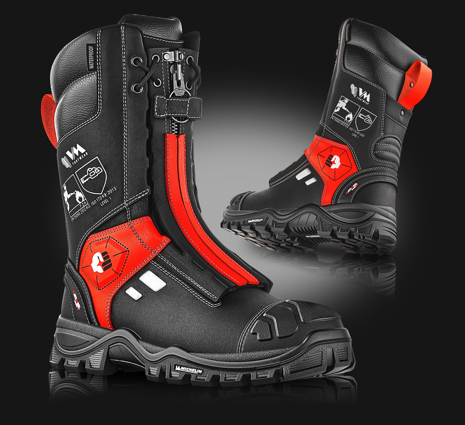 S7L FO HRO SR CI SC F2A HI3 ANTICUT LEVEL 1POLOHOLEŇOVÁ BEZPEČNOSTNÍ OBUV - CELOKOŽENÁ, VODĚODOLNÁ PODŠÍVKA, URČENÁ PRO HASIČE A ZÁSAHOVÉ JEDNOTKY, ODOLNÁ PROTI POŘEZÁNÍ ŘETĚZOVOU PILOU, MICHELIN® TECHNICAL SOLES